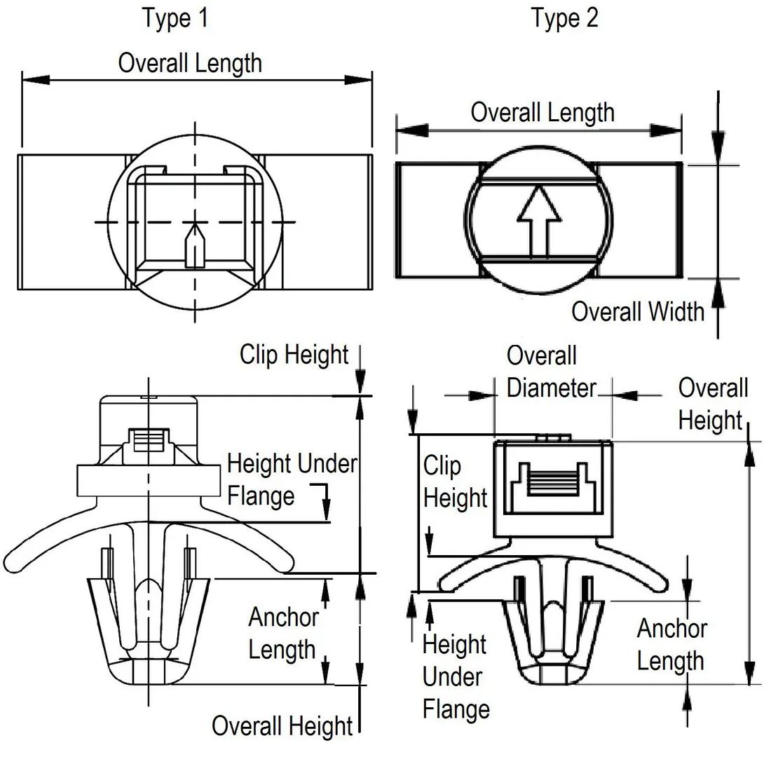 Item Code | Material Flammability Standard | Colour | Overall Width | Maximum Panel Thickness | Mounting Hole Diameter | Height Under Flange | Maximum Operating Temperature | Type | Minimum Operating Temperature | Material | Overall Diameter | Overall Length | Anchor Length | Minimum Panel Thickness | Overall Height | Cable Width | Clip Height | Request Quote |