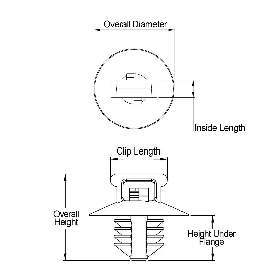 Item Code | Material Flammability Standard | Colour | Anchor Length | Maximum Panel Thickness | Mounting Hole Diameter | Overall Height | Material | Overall Diameter | Minimum Panel Thickness | Clip Width | Type | Request Quote |