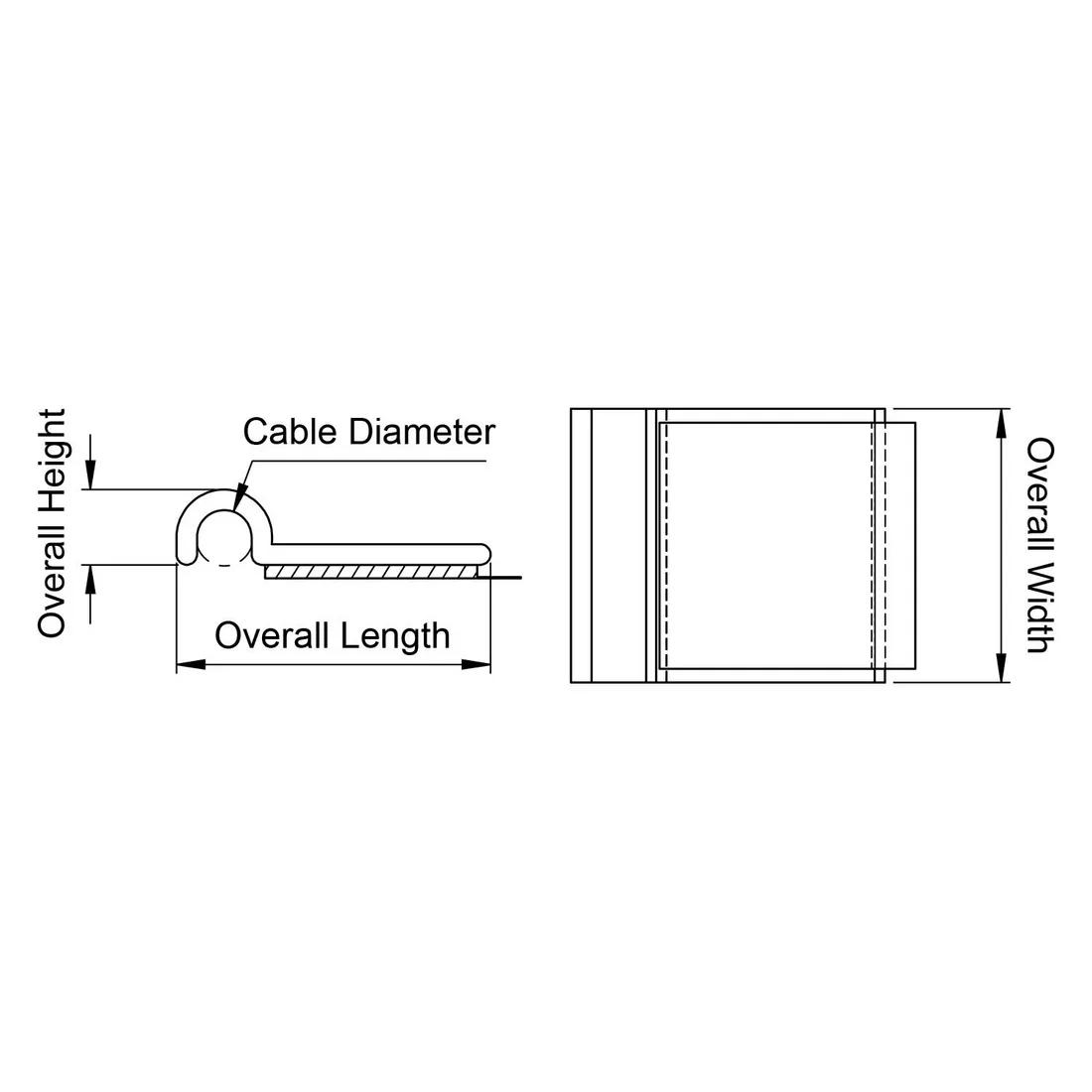 Half U-shaped clip with adhesive base for mounting cables quickly without drilling.