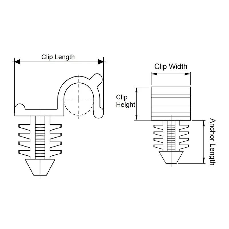 Item Code | Material Flammability Standard | Colour | Clip Length | Mounting Hole Diameter | Cable Diameter | Panel Thickness | Clip Height | Maximum Operating Temperature | Clip Width | Minimum Operating Temperature | Material | Overall Length | Anchor Length | Request Quote |