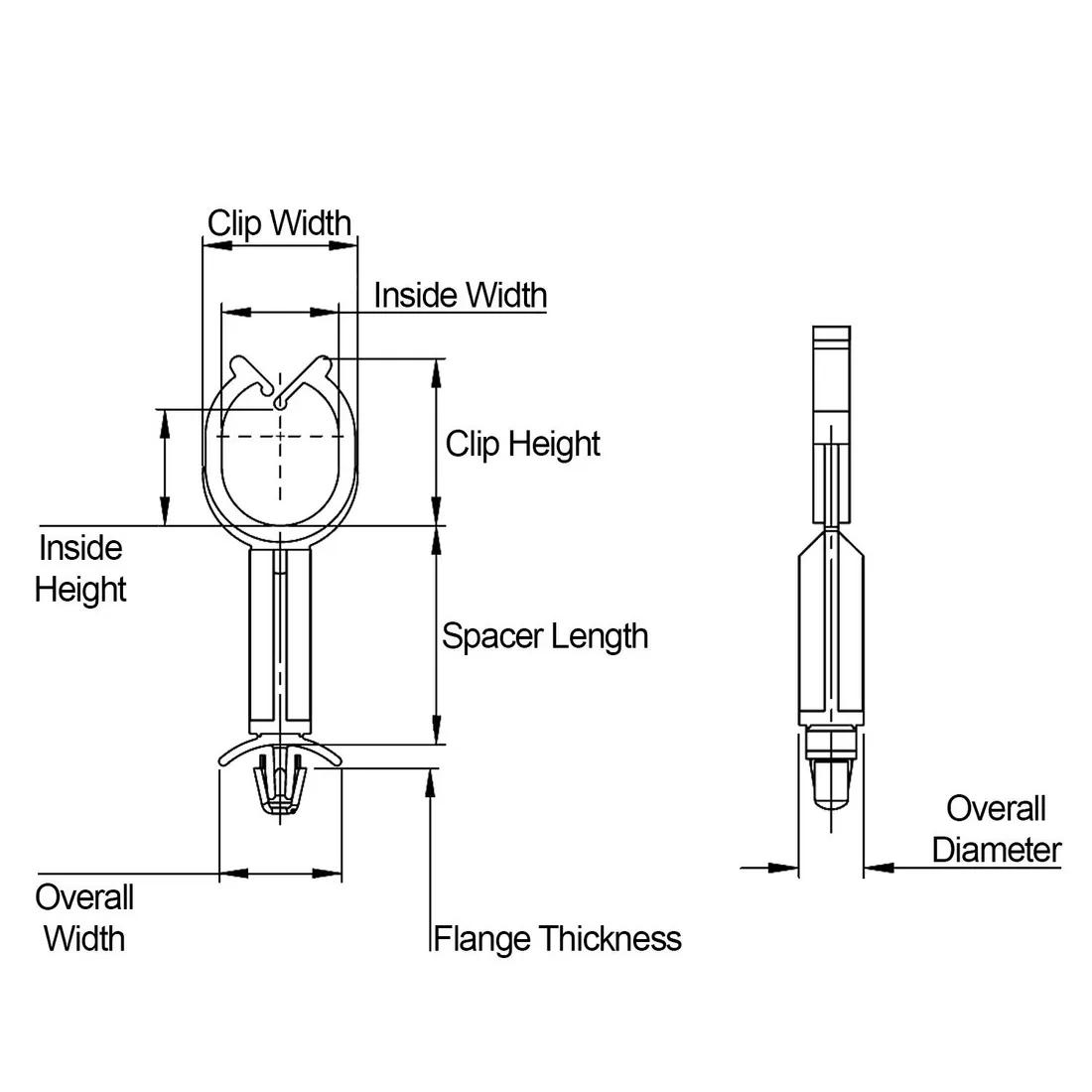 Item Code | Colour | Inside Height | Maximum Panel Thickness | Mounting Hole Diameter | Flange Thickness | Gap Width | Clip Height | Maximum Operating Temperature | Clip Width | Inside Width | Material Flammability Standard | Minimum Operating Temperature | Material | Overall Diameter | Overall Width | Spacer Length | Strap Width | Minimum Panel Thickness | Request Quote |