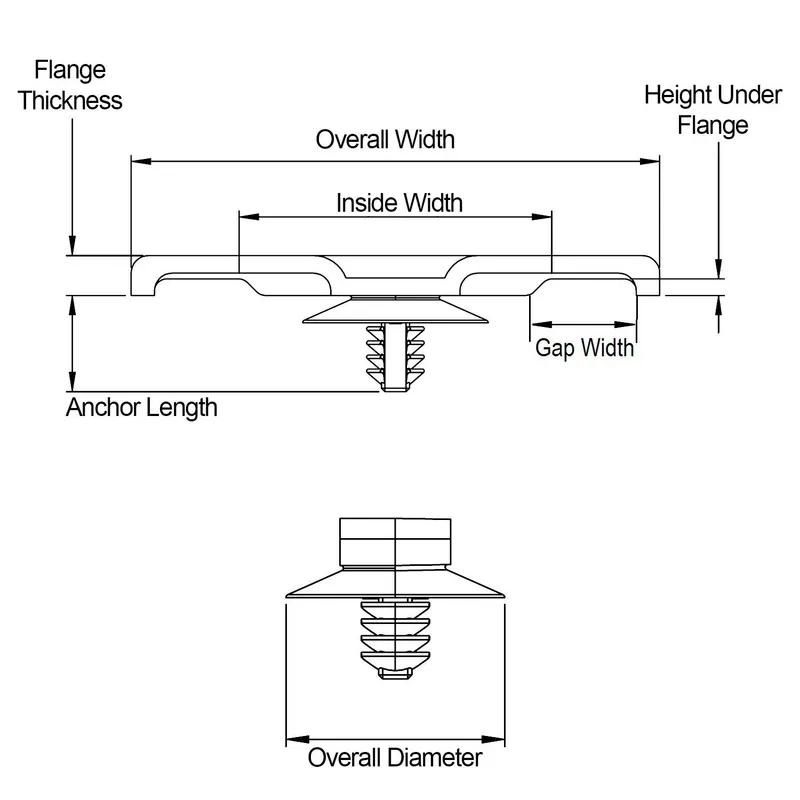 Item Code | Colour | Overall Width | Anchor Length | Mounting Hole Diameter | Gap Width | Height Under Flange | Maximum Operating Temperature | Inside Width | Material Flammability Standard | Minimum Operating Temperature | Material | Overall Diameter | Minimum Panel Thickness | Cable Diameter | Flange Thickness | Overall Height | Clip Height | Clip Width | Type | Overall Length | Request Quote |