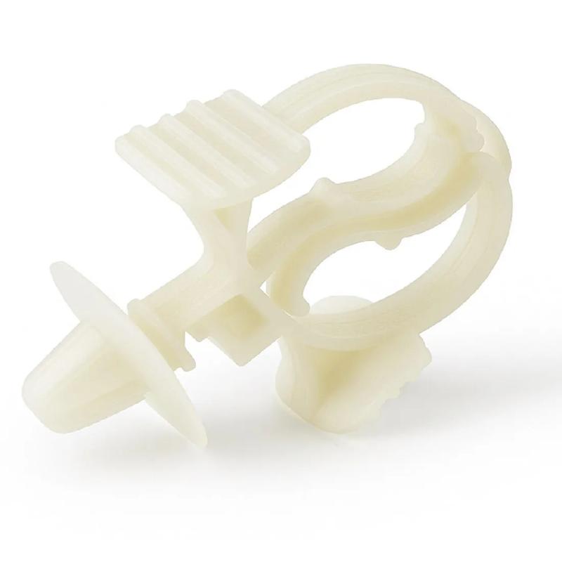 Clip used to manage and secure webbing or strapping at central mounting points.