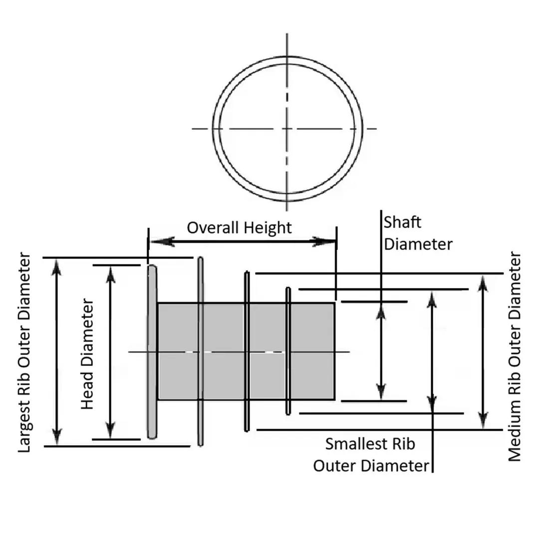 Item Code | Max. Pipe Outside Diameter | Chất liệu | Chiều Rộng Đầu | Medium Rib Outer Diameter | Chiều cao tổng thể | Maximum Wall Thickness | Number of Fins | Màu sắc | Largest Rib Outer Diameter | Shaft Diameter | Smallest Rib Outer Diameter | Yêu cầu báo giá |