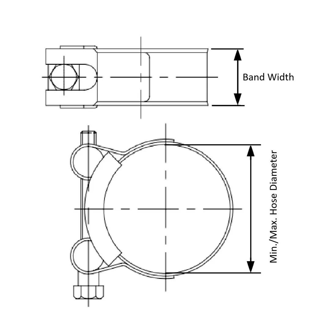 Item Code | Kích Thước Bu Lông | Band Width | Chất liệu | Bolt Length | Đường kính lỗ tròn tối đa | Độ dày tối thiểu của tấm | DIN | Phụ kiện đi kèm | Yêu cầu báo giá |