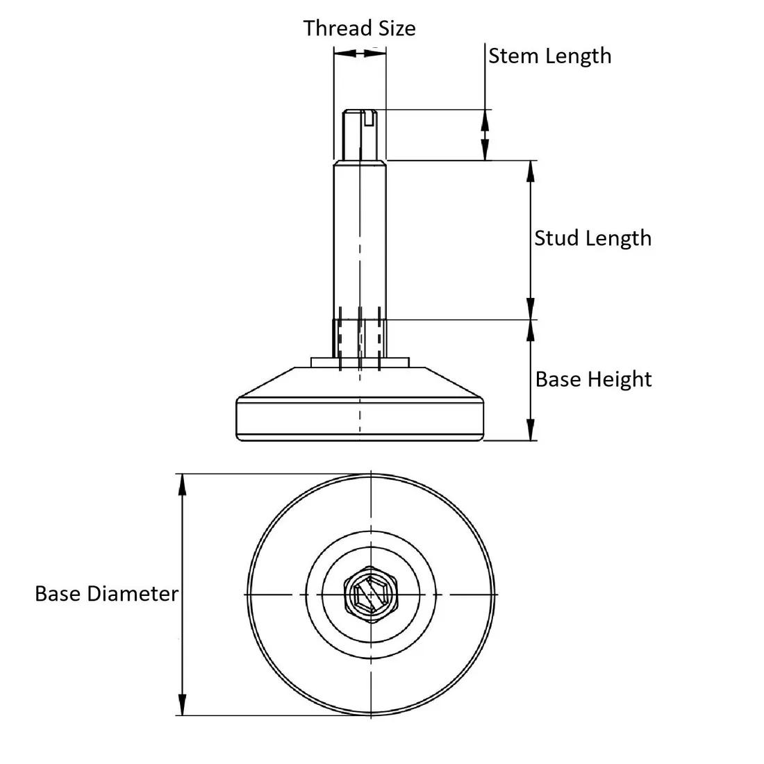 Đầu có rãnh hình lục giác ngoài để điều chỉnh. Ổ cắm POZI ở đế để dễ dàng điều chỉnh.
