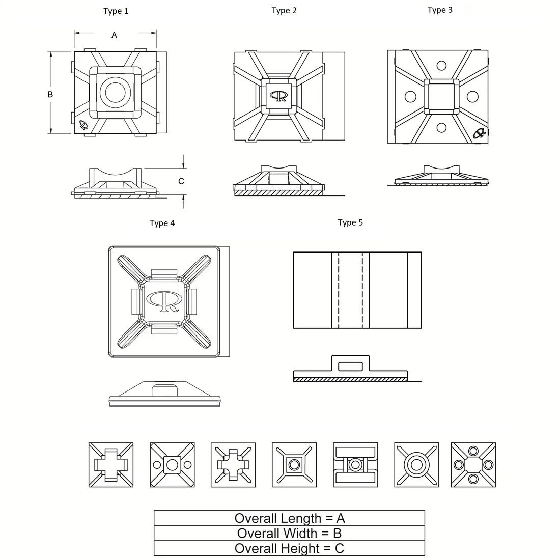 Độ bám dính cao giúp lắp đặt nhanh chóng và dễ dàng. Thích hợp cho các bó dây nhẹ. Xếp hạng chống cháy UL94 V2. Lỗ bảng điều khiển để bắt vít tùy chọn.