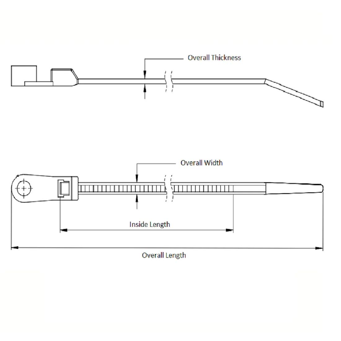 Item Code | Đường kính tối đa của bundle cáp | Màu sắc | Đường kính lỗ tối đa A | Chiều rộng tổng thể | Độ dày tổng thể | Kích thước lỗ gắn | Chiều dài bên trong | Đường kính cáp | Kích thước lỗ gắn tối đa | Đường kính tối đa của chân neo | Độ dày giữ tối thiểu | Đường kính bên trong tối thiểu | Chất liệu | Độ bền kéo vòng tối thiểu | Chiều dài tổng thể | Chiều dài dây đeo | Chiều rộng dây đeo | Đường kính bó cáp tối thiểu | Yêu cầu báo giá |
