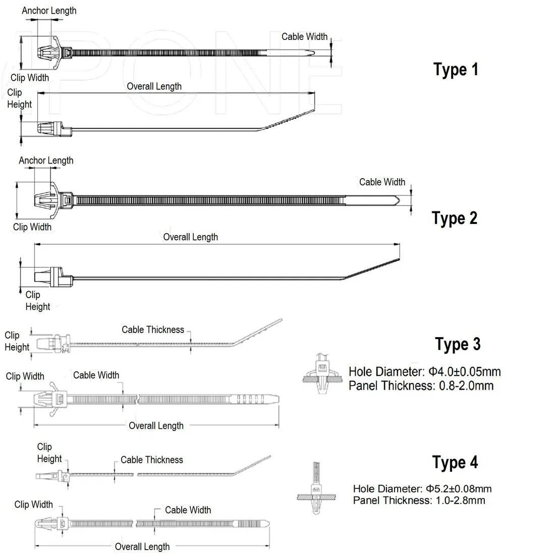 Dây buộc cáp có đế đẩy tích hợp để gắn vào lỗ tấm, đảm bảo bó chặt.