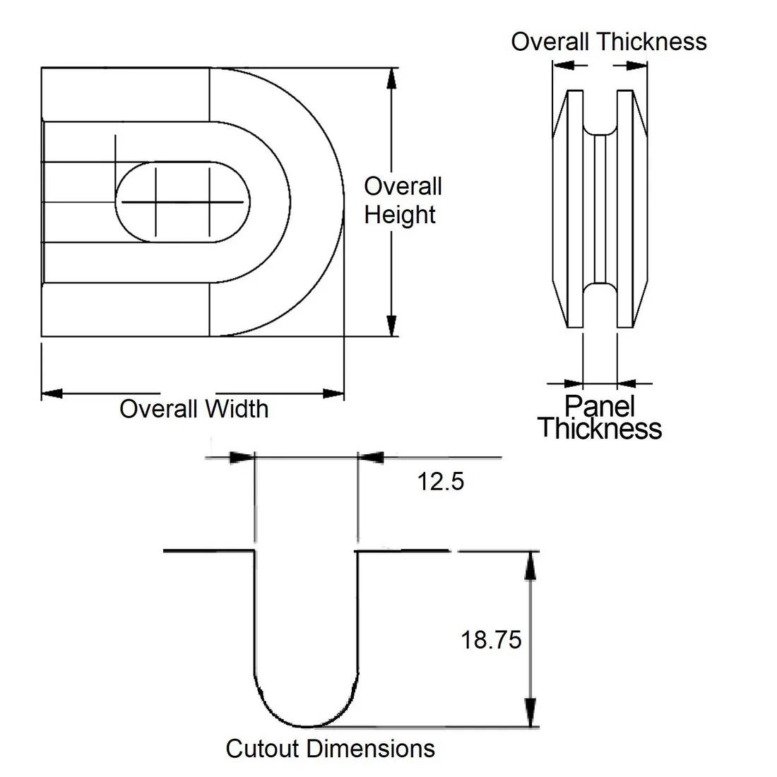 Item Code | Kích thước cắt ra | Đường kính tối đa của bundle cáp | Màu sắc | Chất liệu | Độ dày panel | Chiều cao tổng thể | Kích thước lỗ gắn tối đa | Đường kính bó cáp tối thiểu | Chiều rộng tổng thể | Độ dày tổng thể | Yêu cầu báo giá |