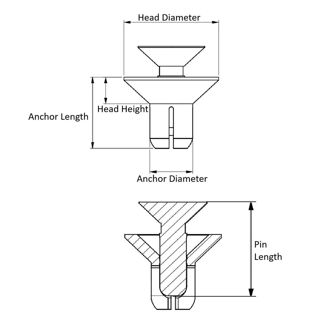 Item Code | Màu sắc | Chiều dài chốt | Chiều dài neo | Góc | Độ dày panel | Kiểu lắp ghép đinh tán | Kích thước lỗ gắn tối đa | Đường kính tối đa của chân neo | Độ dày giữ tối thiểu | Đường kính lỗ tối đa A | Loại đinh tán | Đường kính bên trong tối thiểu | Chất liệu | Độ dày tối thiểu của panel B | Chiều Rộng Đầu | Đường kính lỗ panel có thể tháo rời tối đa | Đường kính cáp tương thích | Chiều Cao | Đường kính neo | Hình dạng đầu đinh tán | Yêu cầu báo giá |