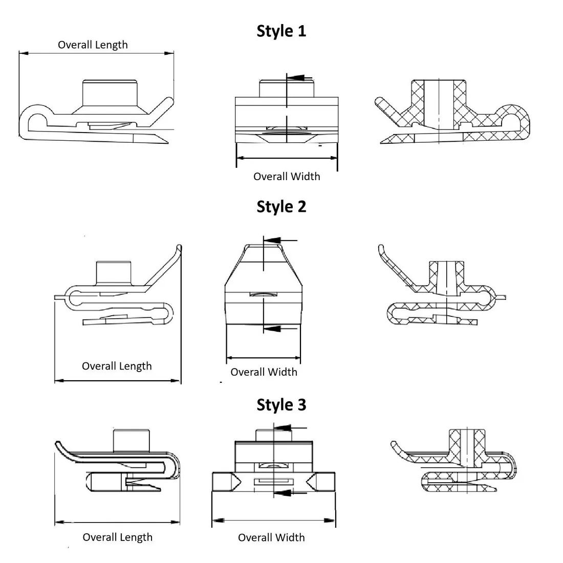 Edge mounted U-Shaped grommet nut. Slides on to the sheet material. Alternative solution to threaded inserts. Can be used as an alternative to a clinch fastener.