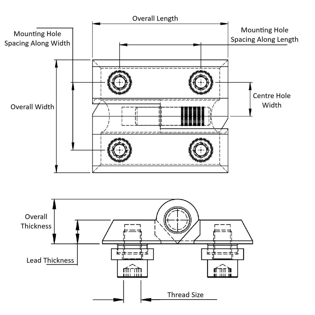 Item Code | Chiều dài lỗ gắn | Kích thước ren | Chiều rộng tổng thể | Chiều dài tổng thể | Locking Direction | Độ dày tổng thể | Chất liệu chốt | Body Material | Leaf Thickness | Chiều cao lỗ gắn | Centre Hole Width | Yêu cầu báo giá |