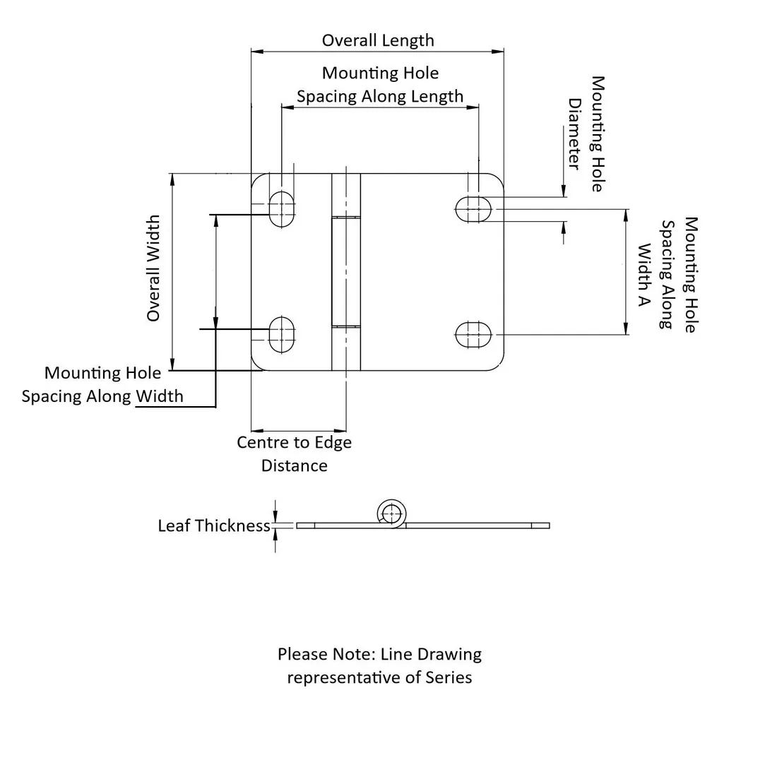 Item Code | Number of Mounting Holes | Chiều dài lỗ gắn | Chiều cao lỗ gắn | Chất liệu | Chiều rộng tổng thể | Chiều dài tổng thể | Kích thước lỗ gắn | Loại | Hoàn thiện | Khoảng cách từ Trung tâm đến Đường biên | Leaf Thickness | Mounting Hole Spacing Along Width A | Yêu cầu báo giá |