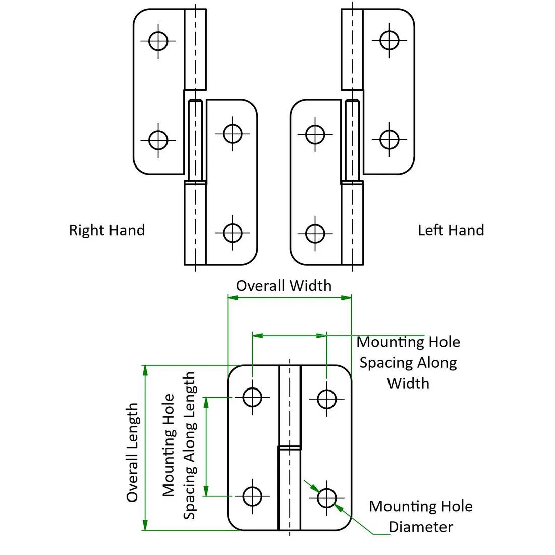 89940002E | Tay trái | Đen | 45.0mm | 60.0mm | Thép không gỉ 304 | 75.0mm | 100.0mm | 11.0mm | 180° | 2.5mm | |