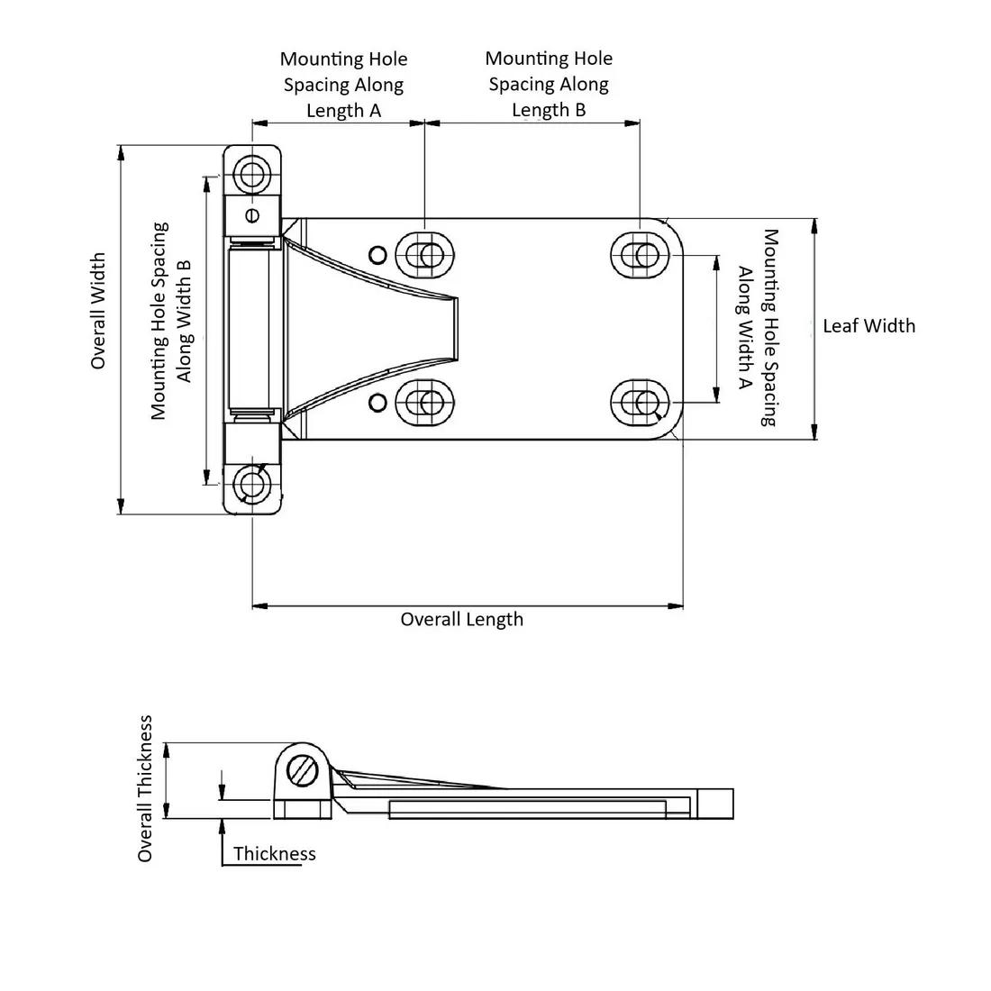 Item Code | Position | Màu sắc | Mounting Hole Spacing Along Width A | Mounting Hole Spacing Along Length B | Chất liệu | Chiều rộng tổng thể | Chiều dài tổng thể | Độ dày tổng thể | Kích thước lỗ gắn | Mounting Height | Mounting Width | Mounting Hole Spacing Along Width B | Mounting Hole Spacing Along Length A | Leaf Width | Độ dày | Chất liệu chốt | Hoàn thiện | Yêu cầu báo giá |