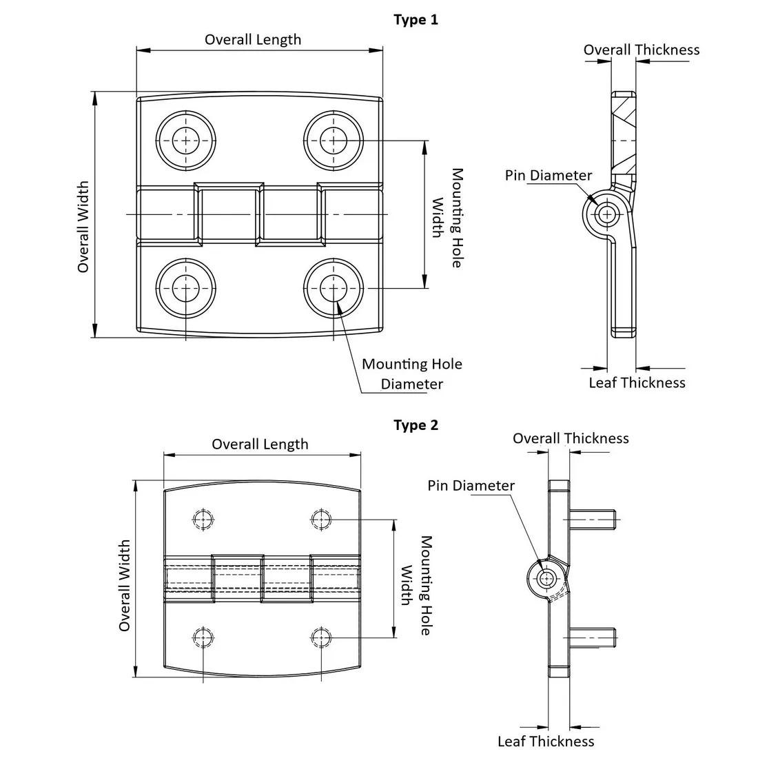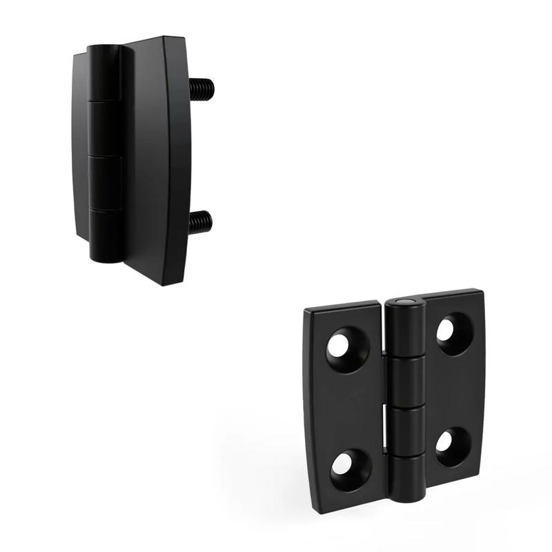 Sợi thủy tinh gia cố PA đen (30%). Chốt thép không gỉ 304. Đinh tán bằng thép không gỉ 304 (không cung cấp đai ốc). Chống ăn mòn, đẹp. Góc quay tối đa 270.
