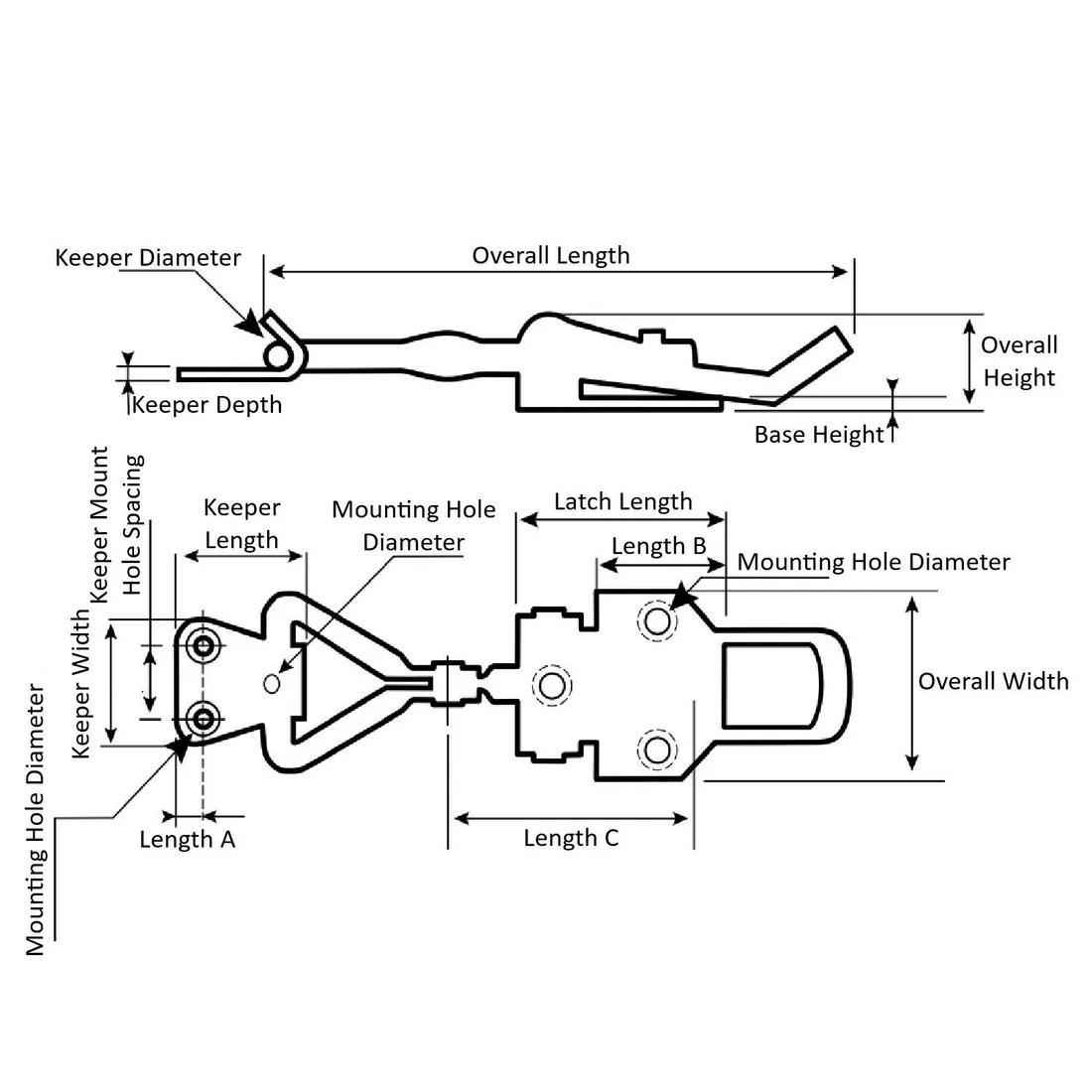 Item Code | Độ sâu của thủ môn | Chiều rộng của người giữ | Length A | Khoảng cách lỗ trồng cây (Hạt giống) | Chất liệu | Chiều rộng tổng thể | Chiều dài tổng thể | Keeper Diameter | Latch Length | Kích thước lỗ gắn | Chiều cao của đáy | Chiều cao tổng thể | Length B | Length C | Keeper Length | Loại | Yêu cầu báo giá |