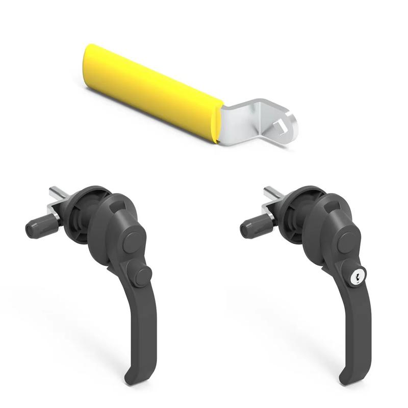 Có thể được sử dụng cho cửa bên trái hoặc bên phải. Cam lăn cho phép khóa bằng lực thấp. Tay cầm có thể tháo rời giúp dễ dàng lắp đặt tại chỗ. Có sẵn với Euro Key (5333) hoặc không có khóa. Tay cầm bên trong giúp mở cửa an toàn từ bên trong.