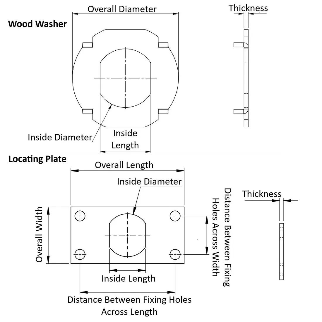 Máy giặt gỗ ngăn khóa cam quay trong các ứng dụng bằng gỗ, nơi thuận tiện cho việc khoan một lỗ tròn để lắp khóa. Tấm định vị hoặc gắn kết bằng thép và cho phép khóa cam với cấu hình chữ D đôi 19mm x 15,9mm được cố định an toàn.