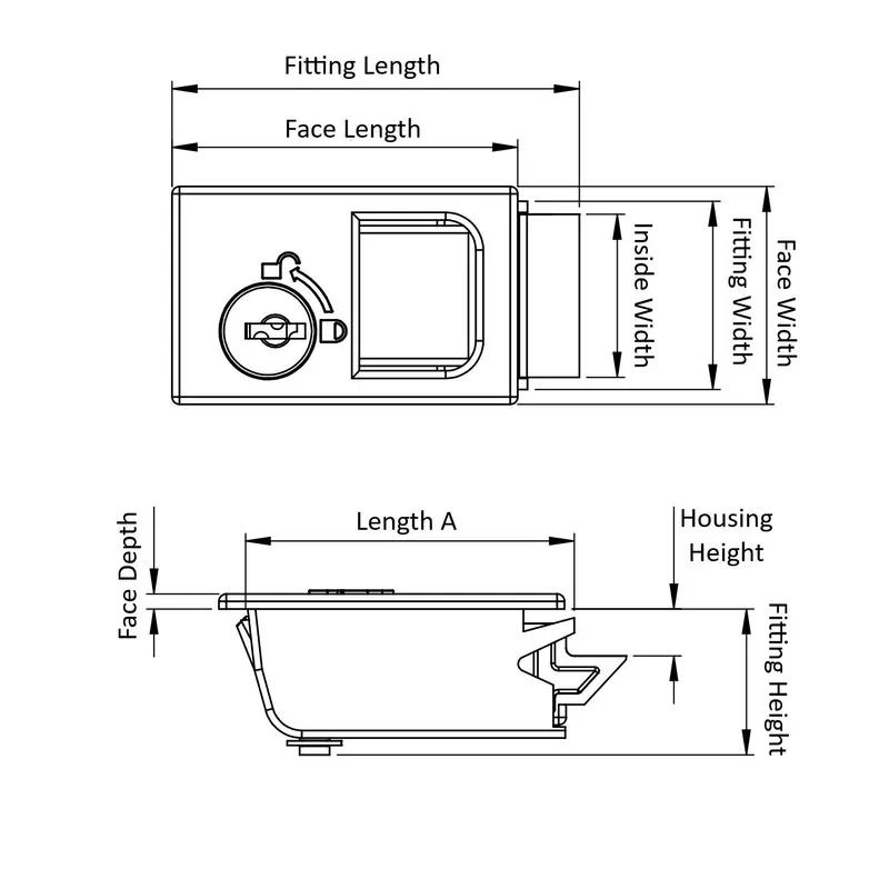 Item Code | Chiều dài ren trong B | Length A | Housing Height | Vật liệu lò xo | Fitting Length | Độ dày panel tối đa | Body Material | Face Depth | Locking Mechanism | Fitting Height | Màu sắc | Face Length | Face Width | Cylinder Material | Fitting Width | Đường kính ngoài tối thiểu | DIN | Khả năng chịu tải | Yêu cầu báo giá |