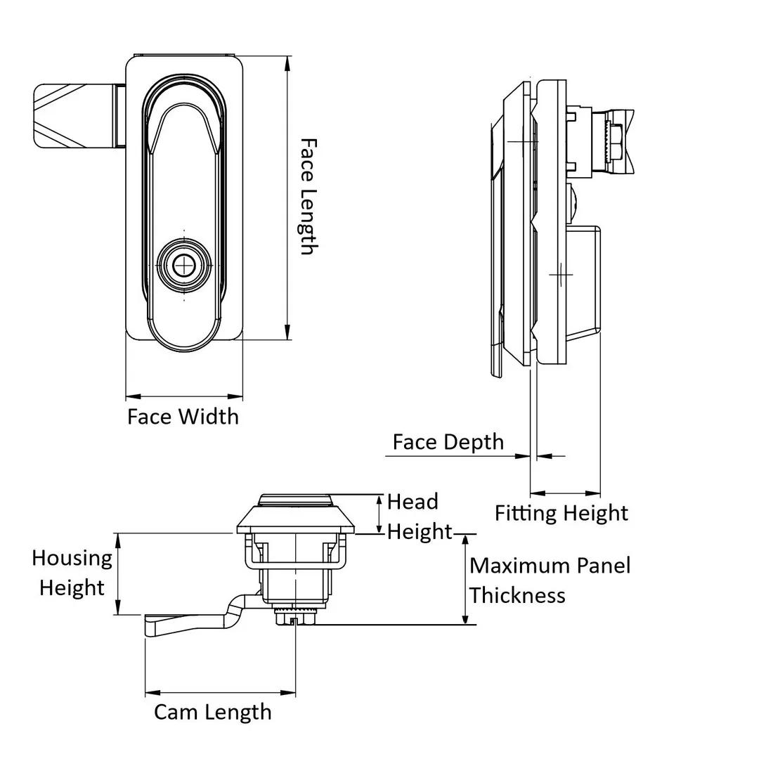Item Code | Kích thước cắt ra | Tongue Material | Cam Length | Housing Height | Chất liệu | Face Width | Grip Range | Độ dày panel tối đa | Chất liệu nút | Chiều Cao | phủ trên | Face Depth | Seal Material | DIN | Fitting Height | Màu sắc | Face Length | Yêu cầu báo giá |