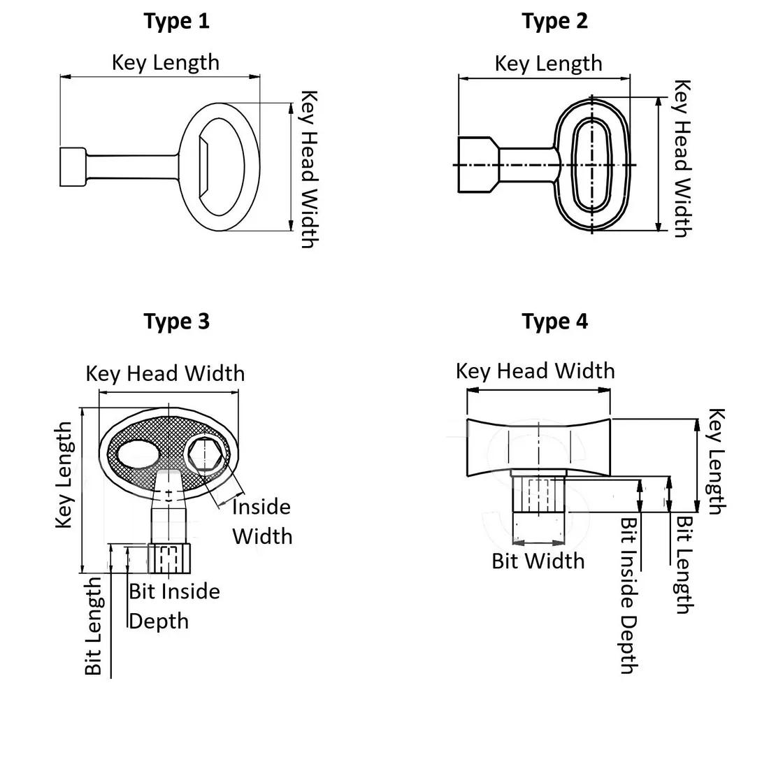 Loại I: Chìa khóa lớn chỉ dùng cho khóa vòng 1/4. Loại 2: Chìa khóa nhỏ cho khóa Mini Cam và Quarter Turns.