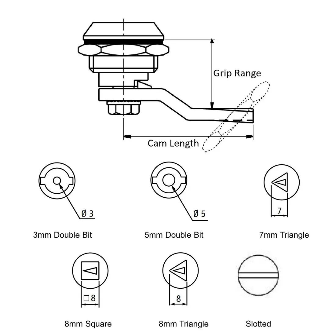 Lý tưởng để sử dụng trên tủ điện và vỏ bọc. Có sẵn 6 kiểu đầu và 5 phạm vi cầm tay. Nhiều phạm vi kẹp tùy chọn, vui lòng liên hệ với chúng tôi. Chìa khóa được bán riêng.