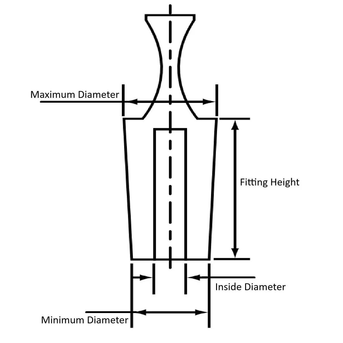Phần đuôi côn và lõi rỗng. Mỗi kích thước phù hợp với một phạm vi các sợi chỉ.