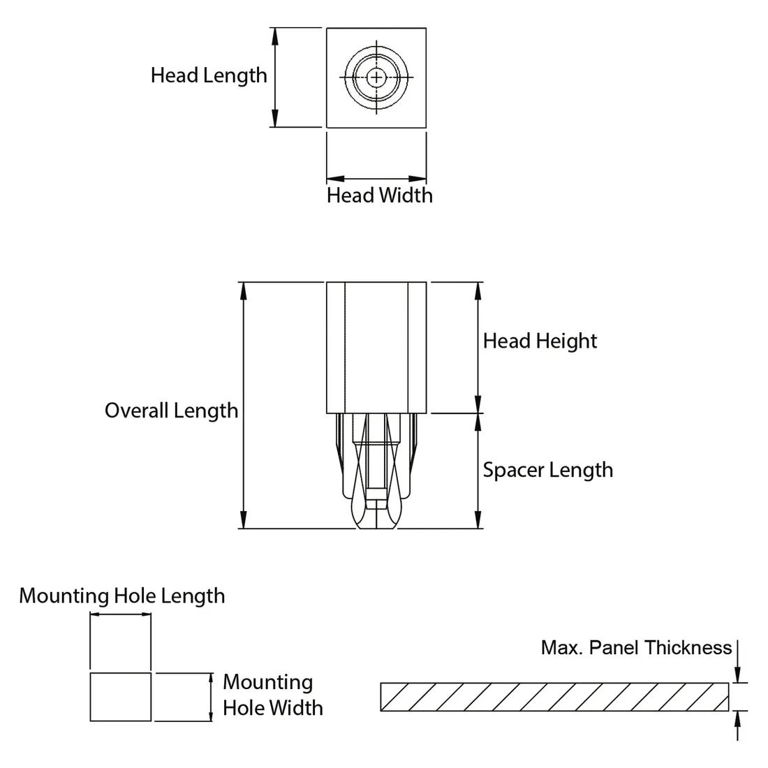 Item Code | Đường kính tối đa của chân neo | Màu sắc | Chiều cao của Spacer | Chiều dài khoảng cách | Độ dày panel tối đa | Chiều Cao | Hướng lỗ gắn | Loại sửa chữa lỗ B | Kích thước lỗ gắn tối đa | Độ sâu lỗ gắn | Đường kính bên trong tối thiểu | Kích thước ren | Chất liệu | Hình dạng đầu | Chiều dài tổng thể | Mô tả UL/CSA | Đường kính ngoài tối thiểu | Yêu cầu báo giá |