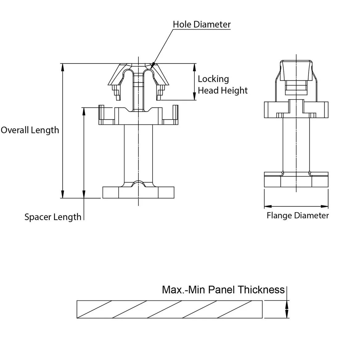 Item Code | Màu sắc | Chiều dài khoảng cách | Chiều dài tổng thể | Kích thước lỗ gắn tối đa | Đường kính tối đa của chân neo | Độ dày giữ tối thiểu | Đường kính bên trong tối thiểu | Chất liệu | Độ dày panel tối đa | Chiều rộng của mặt bích | Loại cố định Lỗ B | Đường kính ngoài tối thiểu | Loại | Khả năng chịu tải | Loại cố định Lỗ A | Đường kính lỗ tối đa A | Chiều dài khoảng cách lỗ | Chiều cao chèn | Mô tả UL/CSA | Đường kính ngoài tối đa | Nhiệt độ hoạt động tối thiểu | Yêu cầu báo giá |