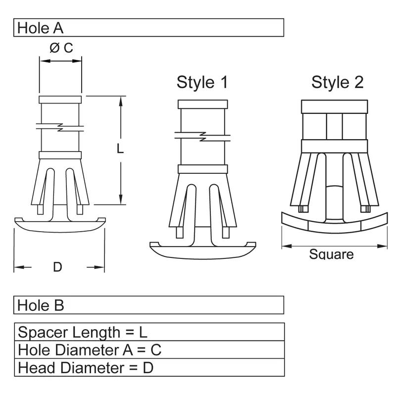 Item Code | Đường kính tối đa của chân neo | Đường kính thân | Chiều dài khoảng cách lỗ | Chiều dài khoảng cách | Mô tả UL/CSA | Chiều dài ren ngoài A | Chiều dài ren ngoài B | Chiều cao chèn | Màu sắc | Đường kính bên trong tối thiểu | Chất liệu | Đường kính ống tối đa | Đường kính ngoài tối đa | Nhiệt độ hoạt động tối thiểu | Đường kính ngoài tối đa | Kích thước lỗ gắn tối đa | Yêu cầu báo giá |