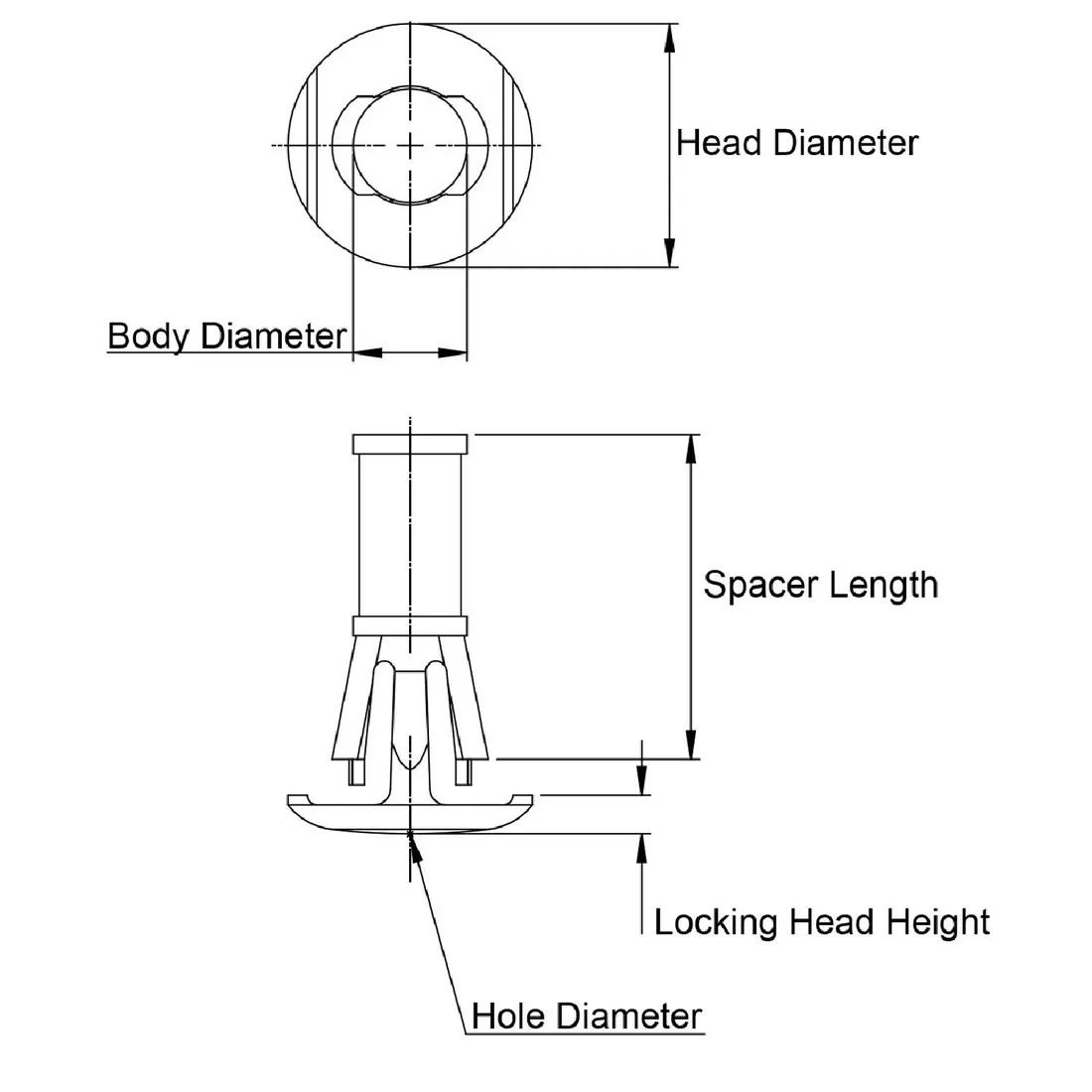 Item Code | Đường kính tối đa của chân neo | Đường kính thân | Chiều dài khoảng cách lỗ | Chiều dài khoảng cách | Mô tả UL/CSA | Chiều Rộng Đầu | Đường kính ngoài tối đa | Khả năng chịu tải | Chiều cao chèn | Màu sắc | Đường kính bên trong tối thiểu | Chất liệu | Đường kính ống tối đa | Đường kính ngoài tối đa | Kích thước lỗ gắn tối đa | Yêu cầu báo giá |