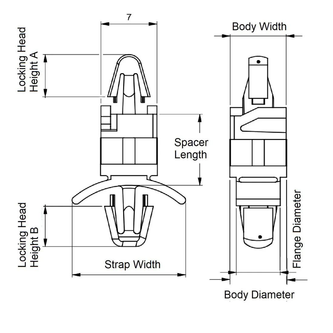 Item Code | Kích thước lỗ gắn tối thiểu | Đường kính tối đa của chân neo | Loại cố định Lỗ A | Đường kính thân | Chiều dài khoảng cách lỗ | Chiều dài khoảng cách | Mô tả UL/CSA | Chiều dài thân kẹp đực (Hạt giống) | Chiều cao đầu kẹp đực (Hạt giống) | Chiều cao chèn | Màu sắc | Đường kính bên trong tối thiểu | Chất liệu | Chiều rộng của mặt bích | Loại cố định Lỗ B | Chiều rộng dây đeo | Đường kính ngoài tối đa | Nhiệt độ hoạt động tối thiểu | Đường kính ngoài tối đa | Kích thước lỗ gắn tối đa | Yêu cầu báo giá |