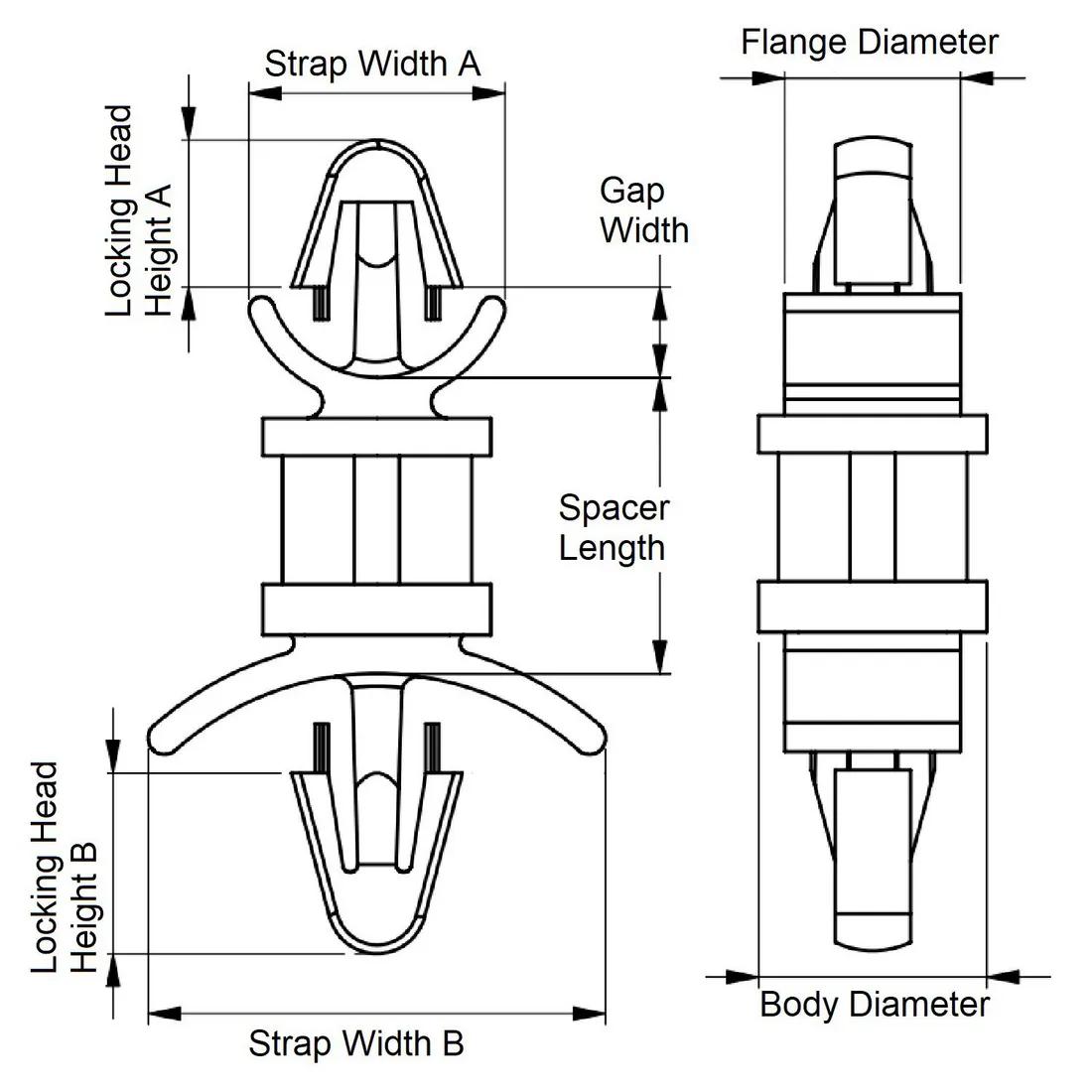 Item Code | Loại cố định Lỗ A | Đường kính thân | Chiều dài khoảng cách lỗ | Chiều dài khoảng cách | Mô tả UL/CSA | Chiều dài thân kẹp đực (Hạt giống) | Chiều cao đầu kẹp đực (Hạt giống) | Đường kính ngoài tối đa | Đường kính tối đa của chân neo | Chiều rộng dây đeo A | Chiều cao chèn | Màu sắc | Đường kính bên trong tối thiểu | Chất liệu | Chiều rộng của mặt bích | Loại cố định Lỗ B | Chiều rộng dây đeo B | Độ cứng | Đường kính ngoài tối đa | Kích thước lỗ gắn tối đa | Yêu cầu báo giá |