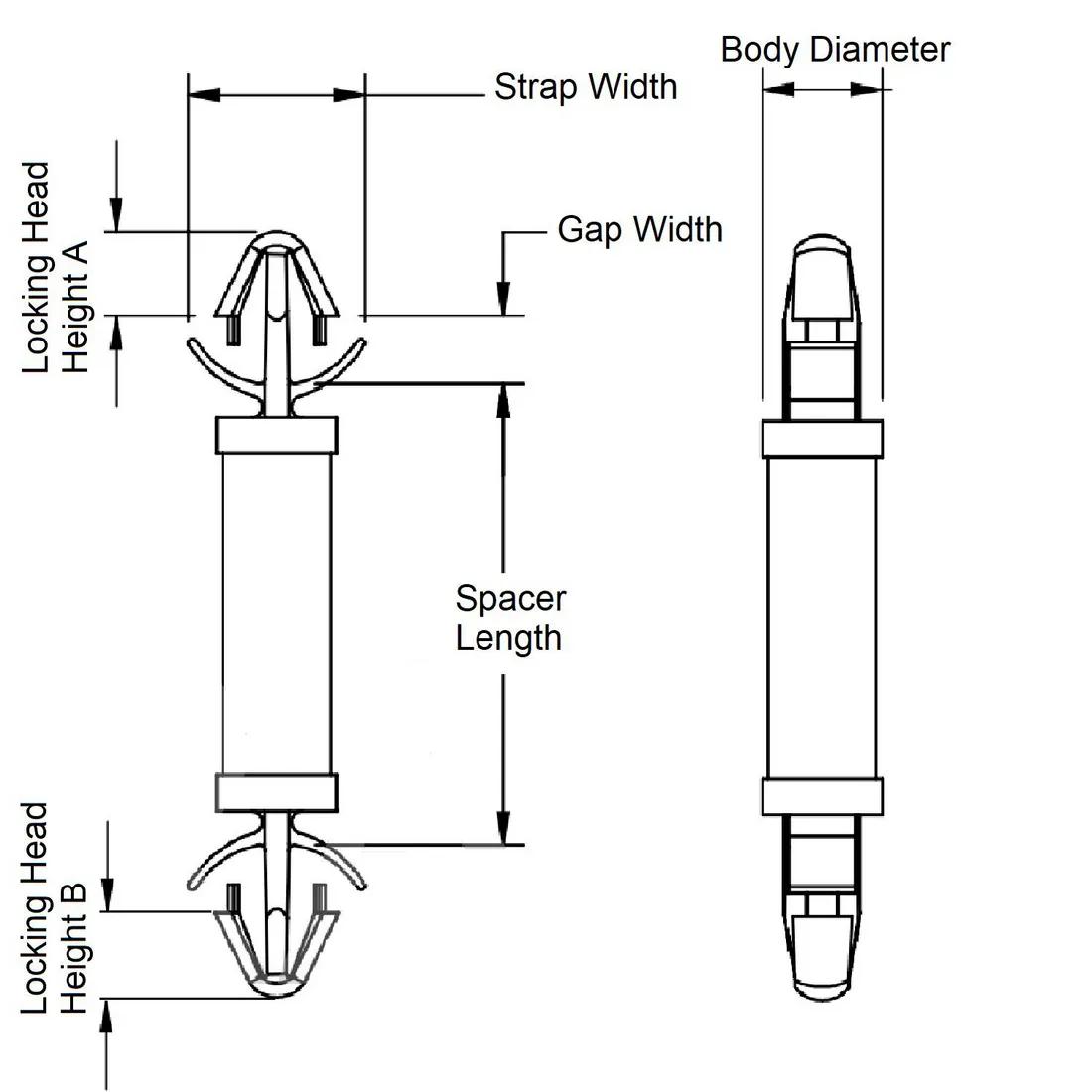 Item Code | Kích thước lỗ gắn tối thiểu | Đường kính tối đa của chân neo | Loại cố định Lỗ A | Đường kính thân | Chiều dài khoảng cách lỗ | Chiều dài khoảng cách | Mô tả UL/CSA | Loại cố định Lỗ B | Chiều dài thân kẹp đực (Hạt giống) | Chiều cao đầu kẹp đực (Hạt giống) | Chiều rộng dây đeo | Độ cứng | Chiều cao chèn | Màu sắc | Đường kính bên trong tối thiểu | Chất liệu | Đường kính ngoài tối đa | Nhiệt độ hoạt động tối thiểu | Đường kính ngoài tối đa | Kích thước lỗ gắn tối đa | Yêu cầu báo giá |