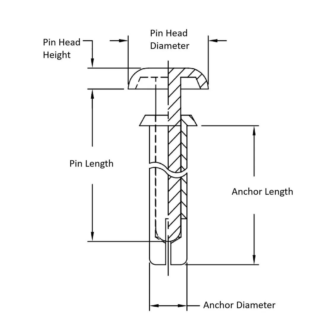 Item Code | Đường kính đầu chân cắm | Độ dày giữ tối thiểu | Màu sắc | Chiều dài chốt | Chất liệu | Độ dày panel tối đa | Kiểu phụ kiện | Đường kính neo | Kích thước lỗ khoan tối đa | Đường kính lỗ tối đa A | Chiều cao đầu chốt | Chiều dài neo | Đường kính ngoài tối thiểu | Yêu cầu báo giá |
