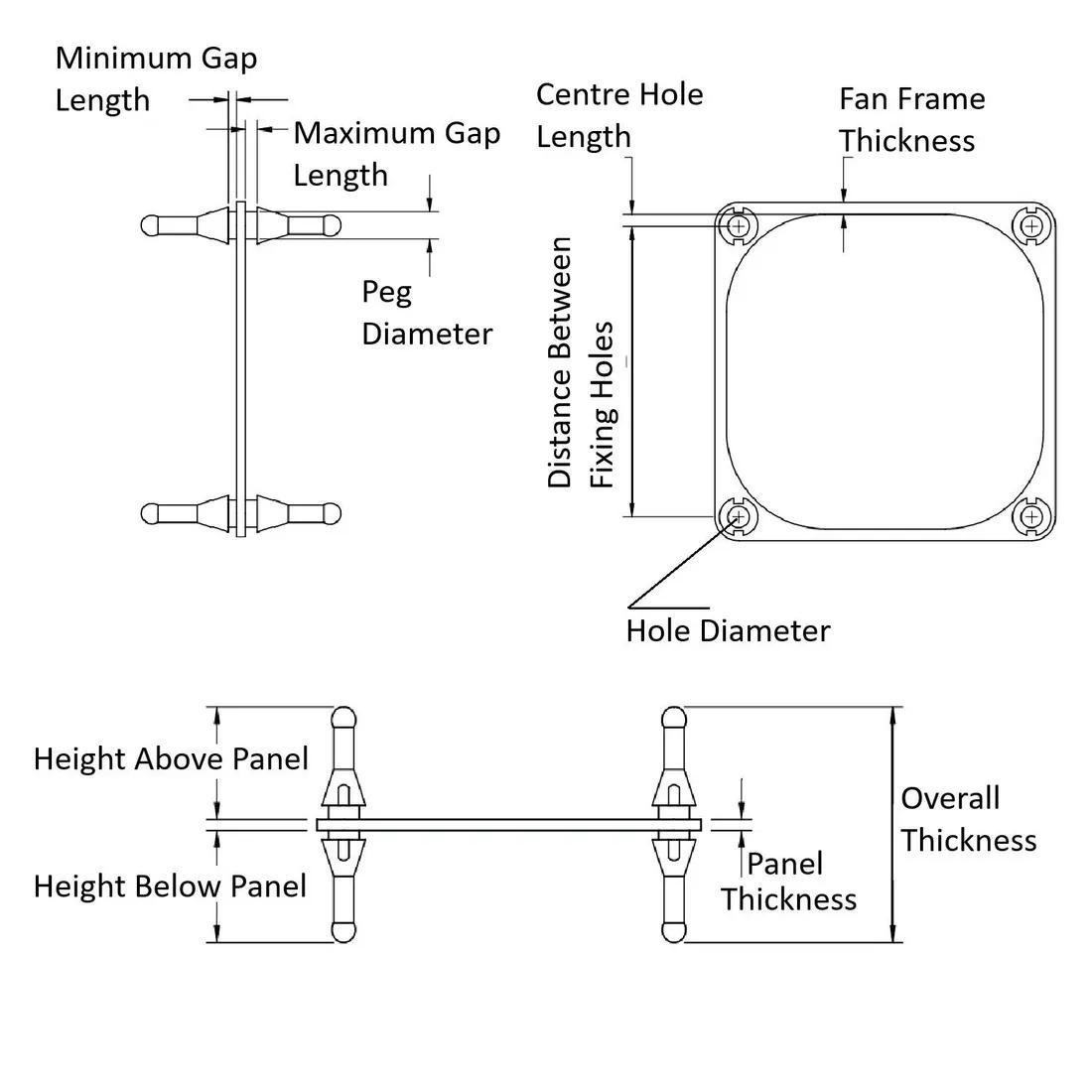 Item Code | Màu sắc | Chất liệu | Kích thước ổ đĩa | Chiều cao dưới tấm | Fan Frame Thickness | Độ dày panel | Maximum Gap Length | Chất liệu chèn | Kiểu Đầu | Độ dày tổng thể | Minimum Gap Length | Centre Hole Length | Peg Diameter | Chiều cao trên bảng | Yêu cầu báo giá |
