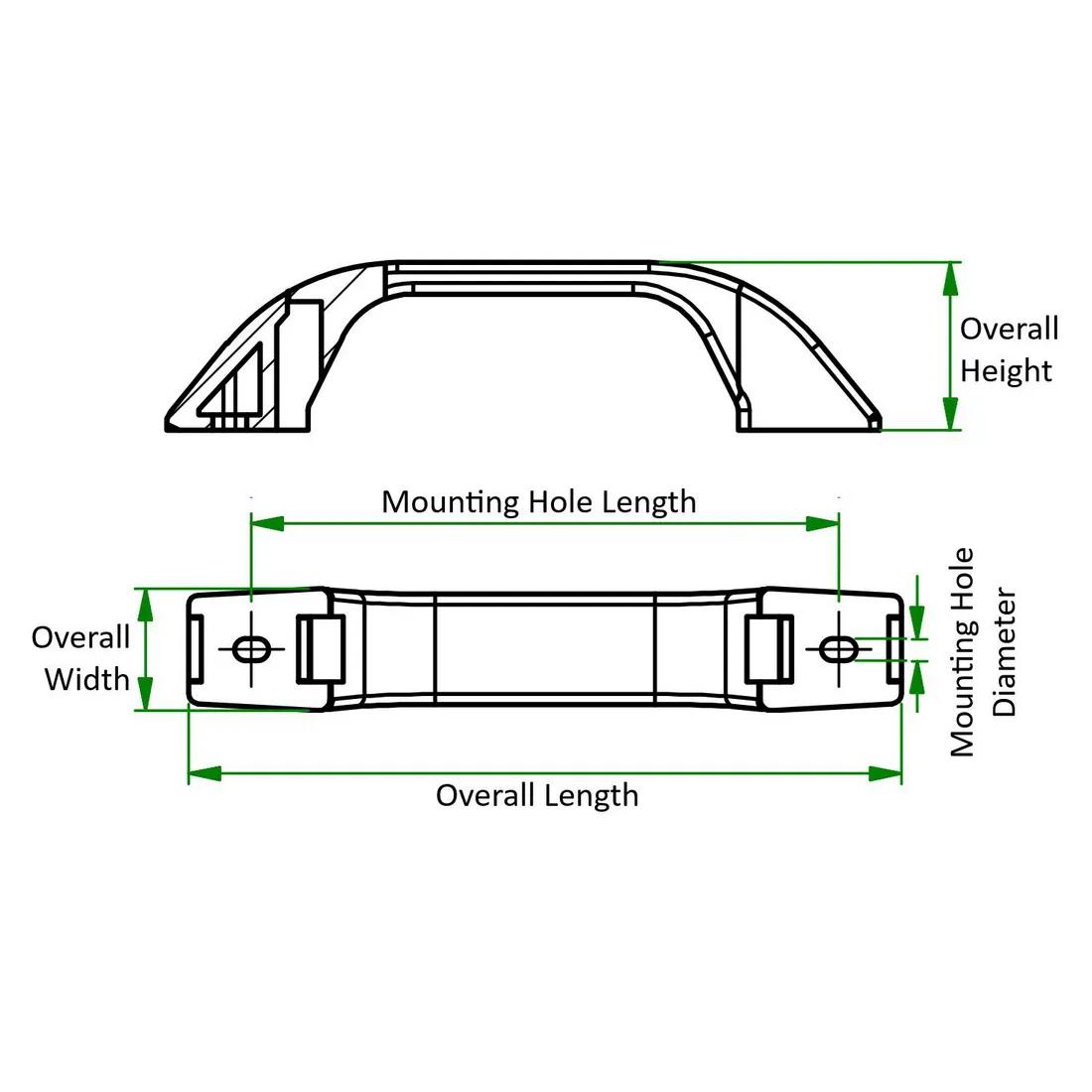 Tay cầm tiện dụng. Hình dạng cong với mặt cắt tròn. Mặt trước gắn nắp đóng nhanh để che đậy việc cố định. Thích hợp cho ốc vít đầu phô mai.